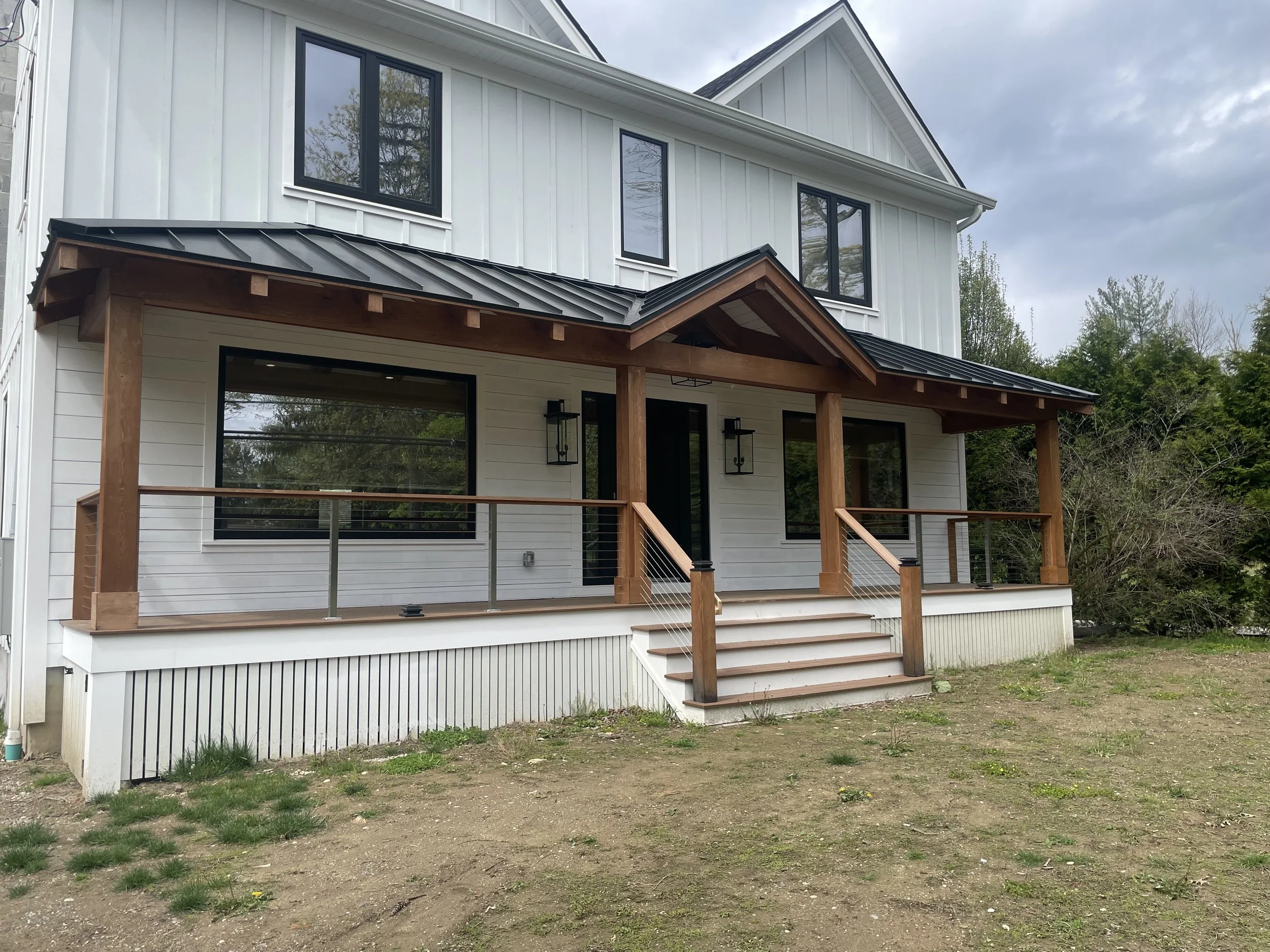 Cedar porch with steel cables